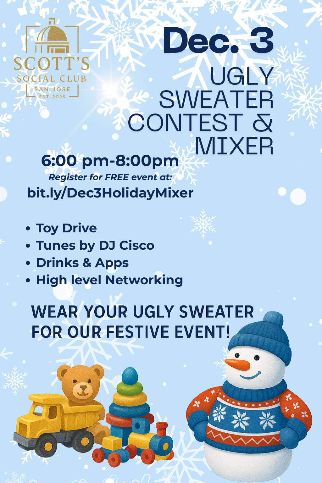 ✨ Let’s raise a glass to a remarkable 2025 and toast to what’s ahead! This special holiday mixer is all about gratitude, good company, and giving back. Please bring a new, unwrapped toy to support our annual Toy Drive — helping local nonprofits make children’s Christmas dreams come true. Together, we can spread joy that lasts well beyond the season.